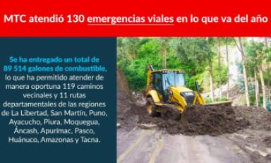 Ministerio de Transportes atendió 130 emergencias viales en lo que va del año