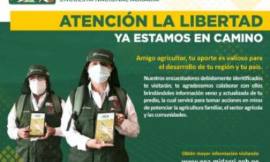 Trujillo en Línea.- La Unidad Ejecutora Gestión de Proyectos Sectoriales (UEGPS) del Ministerio de Desarrollo Agrario y Riego (Midagri), en coordinación con la Dirección Agraria y las diversas agencias agrarias del Gobierno Regional de La Libertad, iniciará mañana la Encuesta Nacional Agraria (ENA) del Bicentenario en toda la región.