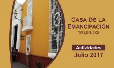 Trujillo en Línea.- Publicamos a continuación la agenda de actividad cultural que ofrecerá la Casa de La Emancipación para el mes de Julio 2017; que incluye conciertos de música, exposiciones, conferencias, recitales, etc. Todas las actividades son de ingreso libre para el público en general