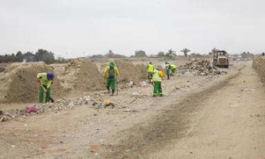 La campaña de limpieza inició a las 8:30 horas en la zona que se denomina camino ceremonial chimú, en el sector El Trópico, distrito de Huanchaco, donde se retiró gran cantidad de basura doméstica y desmonte.