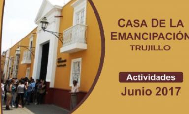 Trujillo en Línea.- Publicamos a continuación la agenda de actividad cultural que ofrecerá la Casa de La Emancipación para el mes de Junio 2017; que incluye conciertos de música, exposiciones, conferencias, recitales, etc. Todas las actividades son de ingreso libre para el público en general