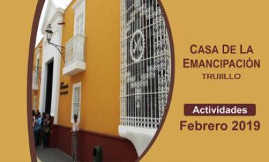 Trujillo en Línea.- Publicamos a continuación la agenda de actividad cultural que ofrecerá la Casa de La Emancipación para el mes de febrero 2019; que incluye conciertos de música, exposiciones, conferencias, recitales, etc. Todas las actividades son de ingreso libre para el público en general