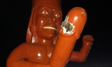 Según funcionarios del municipio fueron tres delincuentes que aparecieron y con un cuchillo amenazaron a uno de los serenos que cuidaba la estatua. Luego comenzaron a destruir la punta del falo de cerámica.