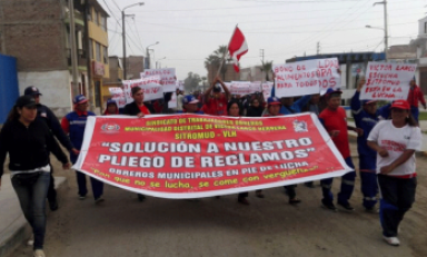 Son 135 obreros que pertenecen al sindicato para que el alcalde Vásquez Llamo les de 45 minutos de refrigerio, bloqueadores solares, uniformes cada dos años y un seguro de vida. A parte del bono de alimentos, pidieron 100 soles para sus refrigerios.