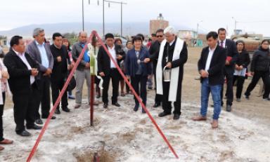 Inmediatamente se procedió a la bendición del terreno y colación de la primera piedra, en donde participaron las autoridades locales y vecinos del lugar.