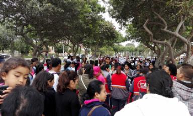 Ello ocurrió durante el simulacro de sismo y tsunami programado a nivel nacional acatado la Municipalidad Víctor Larco teniendo como punto seguro el Paseo de Aguas, en que participaron diferentes instituciones educativas de nivel inicial, primario y secundario así como instituciones de nivel superior, vecinos y organizaciones sociales, brigadistas, personal de la Gerencia de Salud que se dieron cita en este punto y respetaron las instrucciones del personal Defensa Civil.
