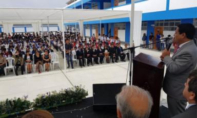 El alcalde de Victor Larco, Carlos Vásquez Llamo destacó la implementación tecnológica del plantel con paneles solares, trece aulas tecnológicas, moderno coliseo polideportivo, entre otras características del