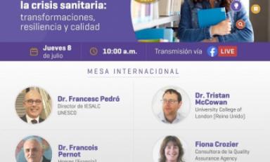 Completarán la mesa de expertos internacionales el Dr. Tristan McCowan (University College of London - Reino Unido), Dr. Francois Pernot (Hceres - Francia) y Fiona Crozier (Quality Assurance Agency - Reino Unido).