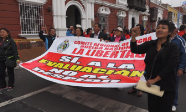 Trujillo en Línea.- La recuperación al 100 % de clases en La Libertad se sigue postergado por las protestas que realizan los docentes que acataron la huelga magisterial el mes pasado. Esta mañana, hicieron una manifestación por el paro de 24 hora que anunciaron días atrás.