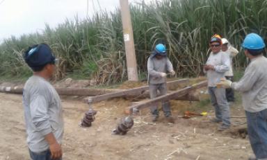 “Trabajamos en la construcción de un nuevo trazo para la recuperación del servicio eléctrico, cuyos trabajos involucran el izamiento de siete (7) estructuras de madera de 18mts, y el montaje de 3mil metros de conductor eléctrico; sin embargo, por la envergadura de los trabajos y las condiciones climatológicas que no permiten fácilmente el traslado de los materiales y equipos eléctricos, se estima restablecer el suministro eléctrico en 02 días”, así indicó el ingeniero Justo Estrada León, gerente regional de Hidrandina.