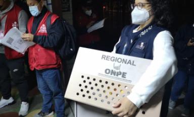 Después de los tres momentos del proceso electoral –la instalación, el sufragio y el escrutinio–, que estuvieron a cargo de los miembros de mesa en las 3,259 mesas de votación de la circunscripción de la ODPE, el personal del ente electoral recogió el material de los 315 locales de votación para trasladarlos hacia la ODPE.