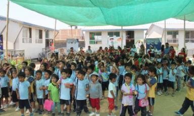 “Estamos muy agradecidos con Chavimochic por acordarse de nosotros. Antes funcionábamos en Guadalupito, pero desde el 01 de marzo estamos aquí en Valle de Dios. Tenemos seis aulas prefabricadas donadas por el gobierno, pero no tenemos cerco ni almacén, los niños estudian inseguros, en la tierra, nos roban por las noches”, refirió la directora.