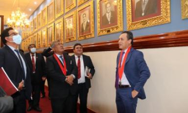La delegación fue recibida por el titular de dicha Corte Superior, Dr. Giampol Taboada Pilco, quien expresó la bienvenida a los visitantes, y explicó cómo se trabajó y gestionó la implementación de la Unidad de Flagrancia en su distrito judicial.