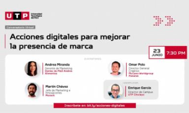 Además, Enrique García, director del Campus UTP Chiclayo, será el moderador del evento. “El objetivo del conversatorio es intercambiar experiencias y casos de éxito de las empresas en el entorno digital. Gracias a los recursos y herramientas virtuales que vienen empleando los panelistas, y que compartirán en sus exposiciones, estamos seguros que el público podrá identificar, aprender y replicar algunas para que sus propias marcas estén presentes y se potencien”.
