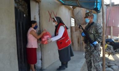 La última repartición fue bajo el estricto control y acompañamiento de los miembros del Ejército del Perú, favoreciendo a 300 familias en condición de pobreza extrema del sector Virgen del Socorro del C.P.M El Milagro, en el distrito de Huanchaco, hasta donde llegaron los kits de alimentos entregados por el voluntariado de Cáritas Trujillo, casa por casa, separados uno del otro y cuidando las normas de bioseguridad e higiene. Como siempre, la acción solidaria inició encomendándose a Dios, a través de la oración.