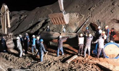 aproximadamente a las 6.25 a.m., con el tendido de 21 tuberías de la línea de conducción de la planta de agua potable.