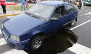El conductor del vehículo , Julio Ramírez, refirió que la pasajera advirtió el hundimiento de la pista y cuando él trató de cerciorarse, por poco cae ya que la llanta delantera izquierda estaba al  aire.