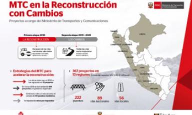 Para el desarrollo de esas obras, el MTC desplegará una estrategia en dos fases. En una primera etapa, de reconstrucción, prevista para este año, el ministerio devolverá todas las vías nacionales, afectadas por El Niño Costero, al estado previo a la ocurrencia del fenómeno.