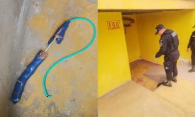 Fue la trabajadora de la casa quien encontró el cartucho de dinamita mientras realizaba la limpieza de la entrada, y llamó a la policía.