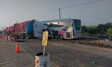 Trujillo en Línea.- La Panamericana Norte se tiñó de sangre a causa del choque entre un ómnibus y un camión que transportaba cebolla. Producto de la colisión, una persona resultó herida.