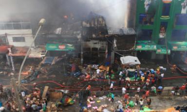 El incendio se produjo al promediar las 9:30 de la mañana, aparentemente por un cortocircuito en la zona de hule de una galería. Luego se expandió por el viento a otras tiendas donde se venden material de alta combustión como plásticos.