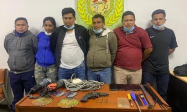 Los intervenidos fueron identificados como José Leonardo Parada Romero (52), alias ‘colocho’; Lorenzo Junior Alexander Amaya Cabanillas (28) alias ‘JR’, Renzo Polet Cáceres Rodríguez (34) alias ‘Rencito’, Gianmarco Lissing Terrones Marquina (29) alias ‘clavito’, Edinson Simón Moncada (34) alias ‘visionero’ y Ángela Vanesa Sandoval Valdez (29), alias la ‘huequi’.