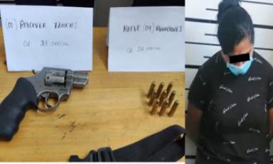 Trujillo en Línea.- Una mujer de 45 años fue capturada por agentes del Escuadrón Verde, en el distrito de El Porvenir, ella portaba un arma y se presume que iba a ser entregada a un extorsionador.