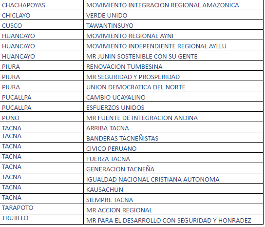 Corresponde informar que al 16 de enero de 2017, las organizaciones políticas que cumplieron con remitir la correspondiente información son: