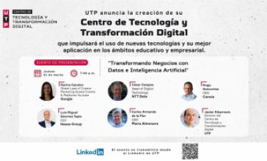 En ese contexto, el Centro de Tecnología y Transformación Digital de la Universidad Tecnológica del Perú (UTP) realizará el conversatorio “Innovación Digital en Acción: Transformando Negocios con Datos e IA”. Este evento virtual gratuito se llevará a cabo el próximo jueves 21 de marzo a las 7:00 p.m. y se transmitirá por el LinkedIn de la UTP.