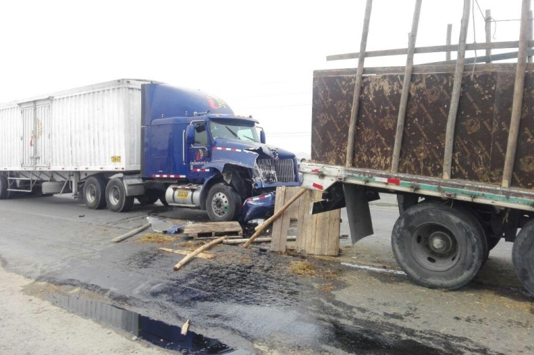 Trujillo en Línea.- Un accidente de tránsito se registró en el kilómetro 577 de la carretera Panamericana Norte. Dos tráileres que se dirigían en el mismo sentido chocaron por alcance y un caballo perdió la vida.