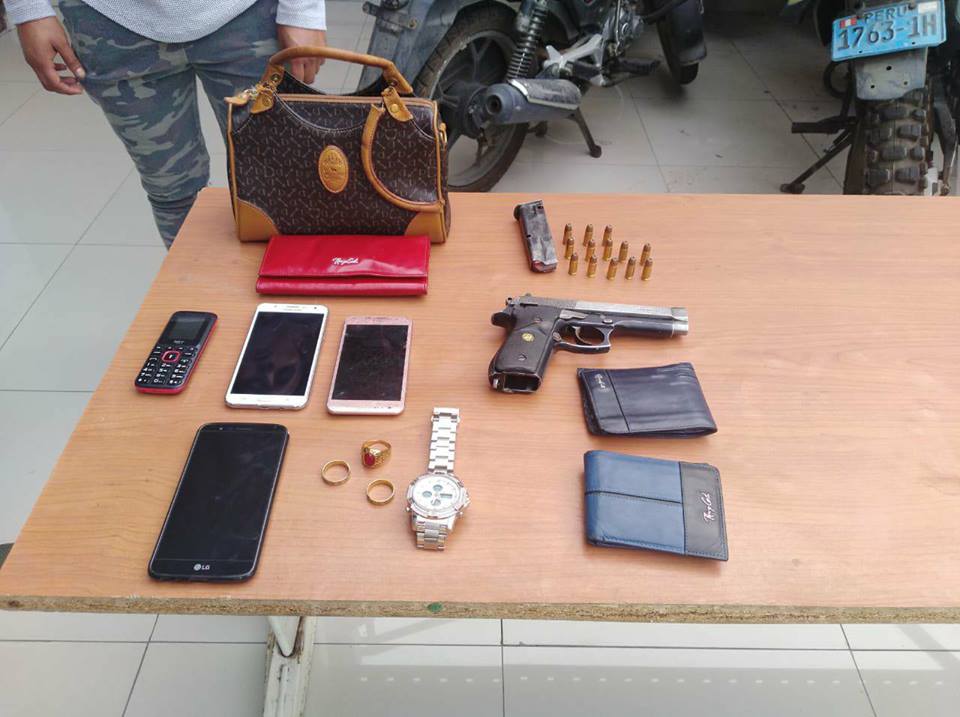 Según informó la Policía, dichos ocupantes descendieron del vehículo para ingresar al interior del centro comercial y luego se trasladaron por la puerta de acceso. Los sujetos fueron intervenidos, a Tenorio Fernández se le encontró 1 arma de fuego con 13 y a la fémina se halló en su poder 6 envoltorios de PBC; mientras que a Amaya Cabanillas 5 envoltorios de esta ilícita sustancia.