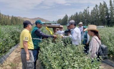 En La Libertad, los especialistas del BAPHIQ, inspeccionaron campos de cultivo y plantas de empaque de arándanos de las empresas Hortifrut Tal S.A.C. y Camposol S.A., donde verificaron las condiciones sanitarias y fitosanitarias que se cumple, desde la cosecha hasta la inspección del envío garantizando que el producto esté libre de plagas, en especial de la mosca de la fruta. (Nota de prensa)