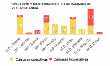 Según los informes de control, en la Municipalidad Provincial de Huaraz, de las 54 cámaras con las que cuenta, 4 no funcionan; en el caso de Carhuaz, las cinco cámaras de videovigilancia que tiene a su cargo el gobierno provincial se encuentran inoperativas. Pasa lo mismo en la provincia de Casma con las 12 cámaras de videovigilancia que tienen a su cargo. En la provincia del Santa, 20 de las 54 cámaras de videovigilancia no funcionan.