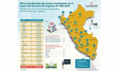“Como una información preliminar sabemos que existen 224 obras a nivel nacional que han sido inventariadas, las cuales estarían en el inicio de sus respectivos procesos para reactivarse durante este primer semestre del año en el marco de la aplicación del Decreto de Urgencia N° 008-2019”, reveló.