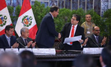 Este acto estuvo encabezado por el presidente de la República, Martín Vizcarra, y contó con la participación del presidente del Consejo de Ministros, César Villanueva, y ministros de Estado de los diversos sectores.