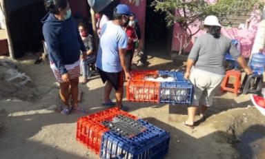 En diversos puntos del distrito de La Esperanza y del Centro Poblado Menor Alto Trujillo, en el distrito El Porvenir, el Arzobispado ha venido colaborando de manera permanente, desde marzo pasado, con la entrega de 50 pollos semanales, para que puedan ser compartidos con las familias más vulnerables de la zona, que vienen sobrellevando la cuarentena o que no han recibido beneficio alguno de cualquier programa estatal.