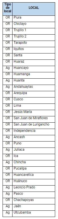 Las oficinas registrales (OR) y agencias (Ag) donde se atenderá los días domingos son las siguientes: