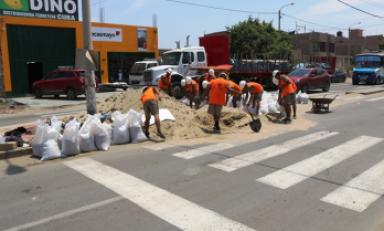 Juárez Castillo invocó a los vecinos a colaborar con el resguardo de sacos que se encuentran en las vías y evitar llevarlos a sus viviendas pues es con ellos que se evitará el ingreso de aguas a calles aledañas a la ruta establecida por Defensa Civil.