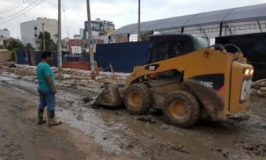 En tanto personal municipal realiza labores de desaguado de calles mientras que el área de limpieza pública procede a recoger los desperdicios en todo el distrito a fin de mantener la salud de los victorlarquenses.