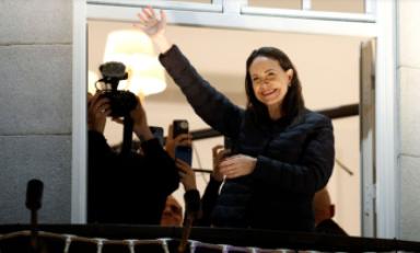 Machado, implacable crítica de Maduro, salió a saludar desde el balcón de su hotel después de las 02H00 (01H00 GMT), recibiendo una ovación y el canto del himno nacional de Venezuela.