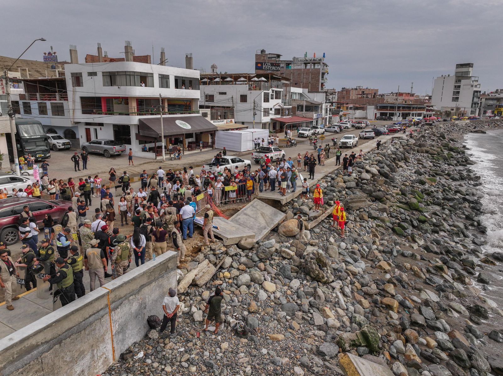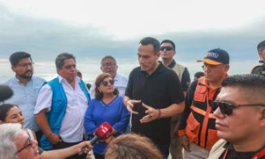 Posteriormente, se dirigió a la zona conocida como El Boquerón, en el balneario de Huanchaco. En ambos puntos, el Mandatario recibió informes técnicos sobre los trabajos de prevención en estas zonas costeras.