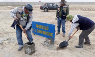 El terreno, de propiedad de Chavimochic tal como consta en la partida N° 11296837 de SUNARP, fue cedido por convenio a la Fuerza Aérea del Perú, para la construcción de una base y helipuerto. Sin embargo, el ciudadano Segundo Sánchez Paredes intenta apropiarse del predio entablando un proceso judicial ante el Séptimo Juzgado Civil, con el argumento de una prescripción adquisitiva de dominio. No obstante, tal como se pudo constatar con notario público, tal terreno se encuentra libre y baldío en casi su totalidad, hecho que desestima esa estrategia legal.