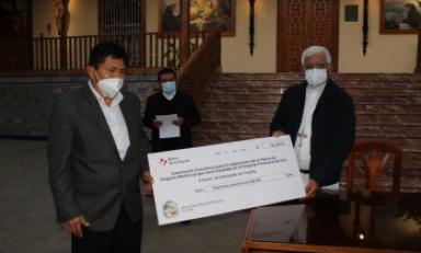 Trujillo en Línea.- Durante una conferencia de prensa, el Arzobispo de Trujillo, presidente de la Conferencia Episcopal Peruana y del CELAM, Mons. Miguel Cabrejos Vidarte OFM., recibió la donación simbólica del alcalde Provincial de Virú, Andrés Chávez y de Chao, Ney Gámez, correspondiente a 400 mil soles, para liderar la adquisición de una moderna planta de oxígeno, a favor de pacientes con coronavirus, en esta zona de la región.