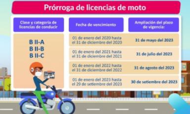 Trujillo en Línea.- El Ministerio de Transportes y Comunicaciones (MTC) prorrogó la vigencia de las licencias de conducir de clase B, para conducir motocicletas y mototaxis, desde mayo hasta setiembre de este año, según lo establecido en el Decreto Supremo N° 001-2023-MTC, publicado anoche en la edición extraordinaria del diario oficial El Peruano.