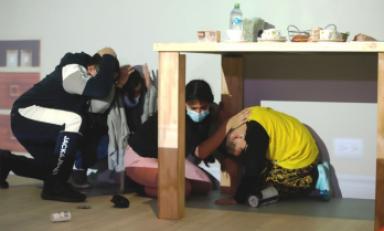 Yamasaki indicó que durante un gran movimiento sísmico casi nadie podrá mantenerse de pie y, por lo tanto, se recomienda agacharse, cubrirse y sujetarse para evitar perder el equilibrio o que algún objeto pueda caer encima de las personas y causarles daño. Agregó, nunca ponerse cerca de ventanas.