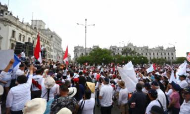 La Policía Nacional del Perú (PNP) anunció este jueves que 11,800 agentes se han desplegado en diferentes puntos de la capital para el control de las protestas.