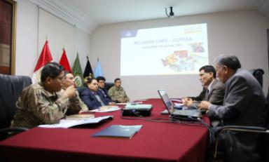 En la reunión que se llevó a cabo en las instalaciones del CCFFAA, los funcionarios de ambas instituciones evaluaron las medidas que tomarán para la protección de los miembros de mesa y garantizar el desplazamiento de los electores para cumplir con la emisión de su voto.