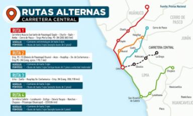 Sutran informa rutas alternas a la Carretera Central transitables y recomendadas por el MTC