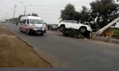 Todo ocurrió en el distrito de Laredo, en la avenida que conecta este distrito con El Porvenir. El vehículo blanco de placa C8H-331 quedó suspendido y sostenido por parte de la base del poste.