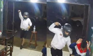 Todo quedó grabado en los videos de seguridad, donde se observan a dos jóvenes que cenaban una hamburguesa en el interior de un local, cuando ingresó un sujeto con casco.